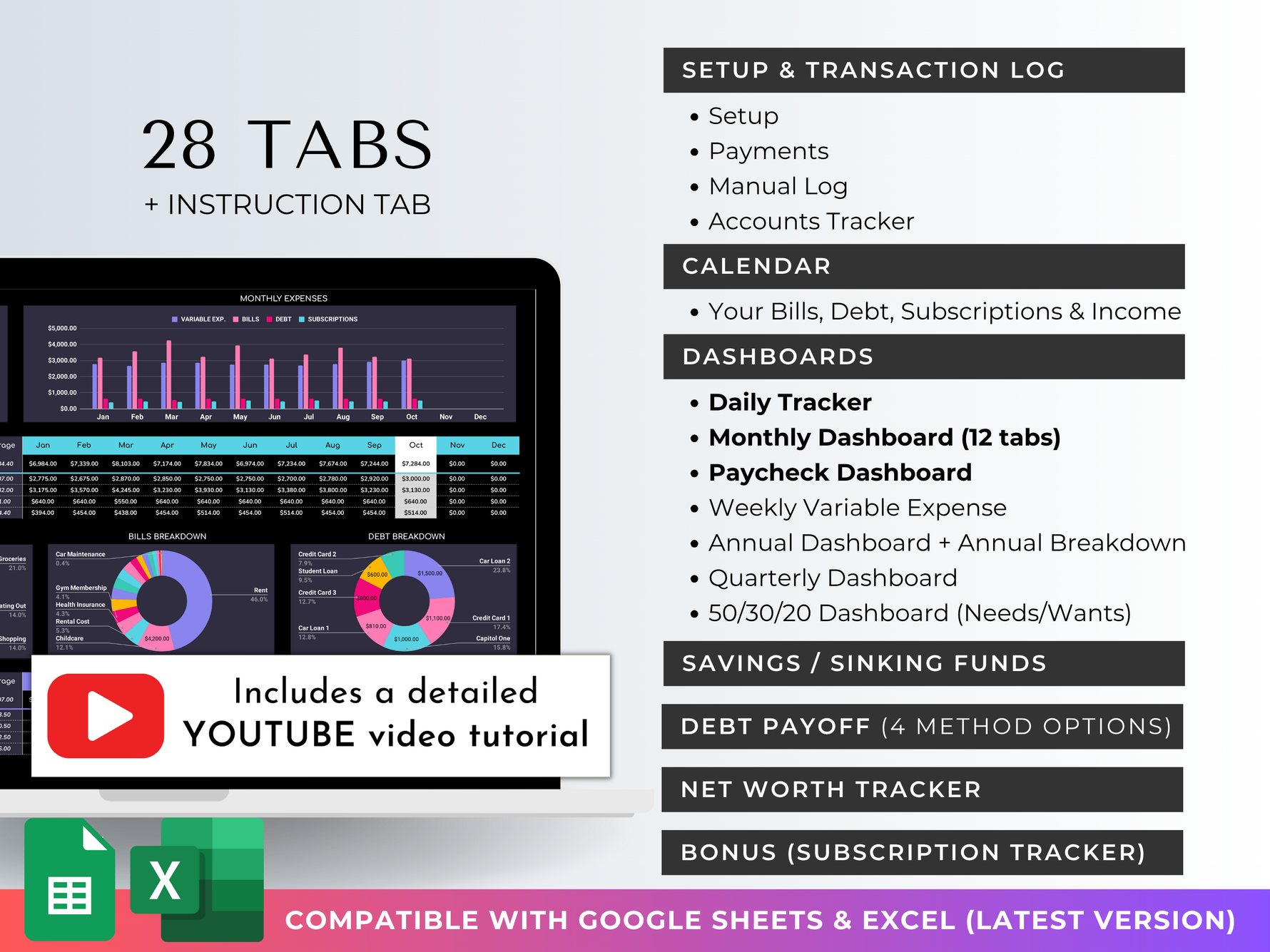 - Download instantly - Get your PDF with Google Sheets/Excel link