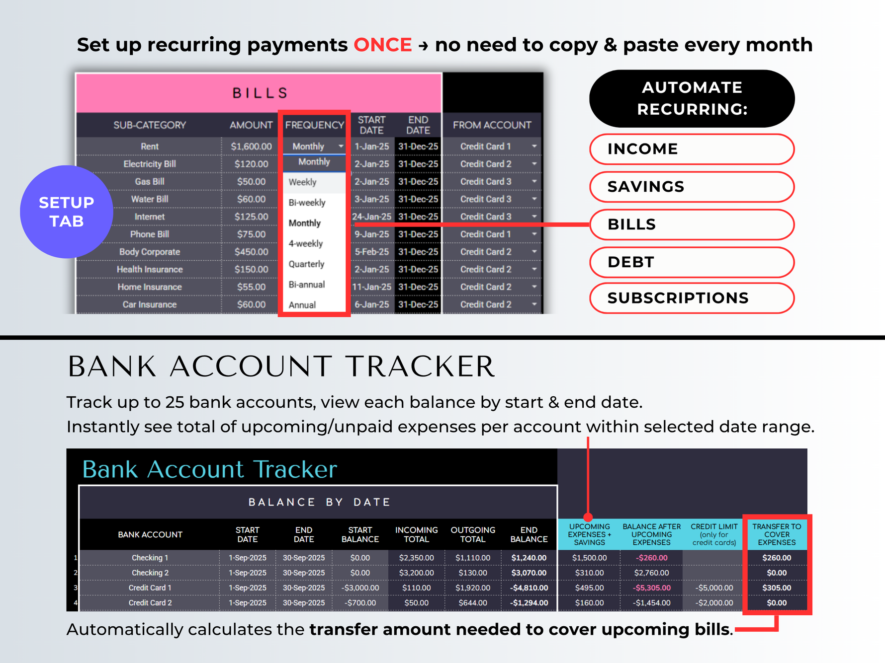 - No more "forgetting" to update your budget every month