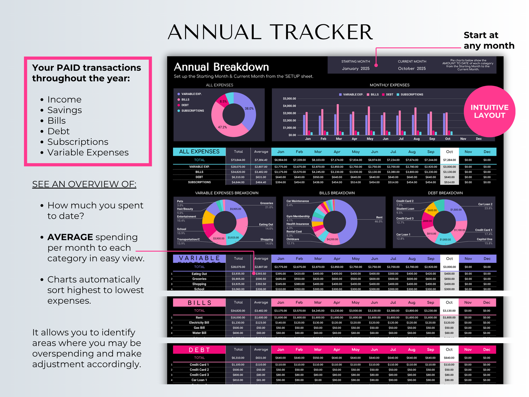 - ✓ Annual Dashboard + Breakdown - See your year at a glance