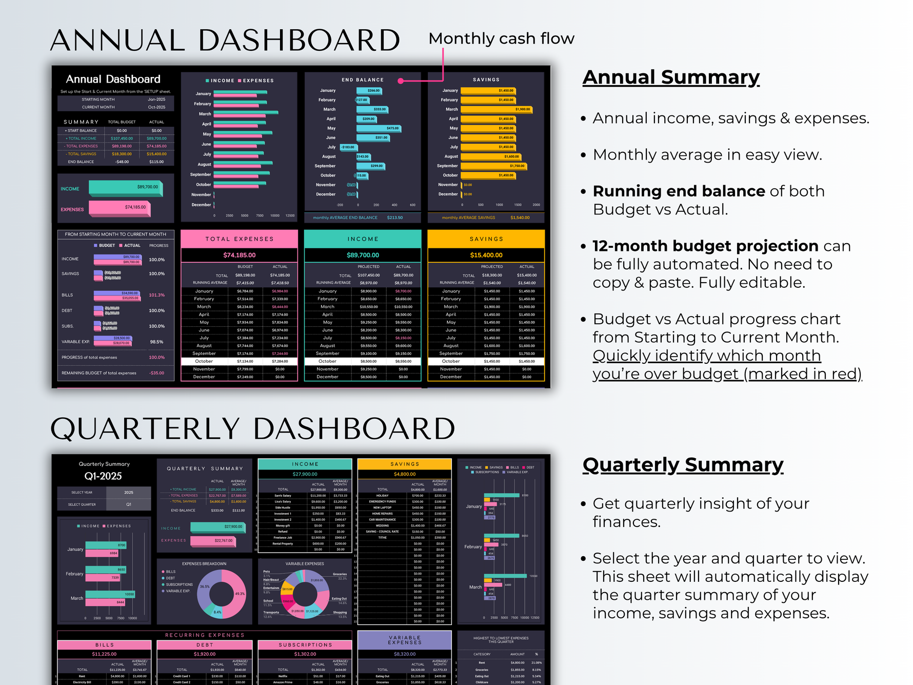 - ✓ 12 Monthly Dashboards - Each month automatically populated